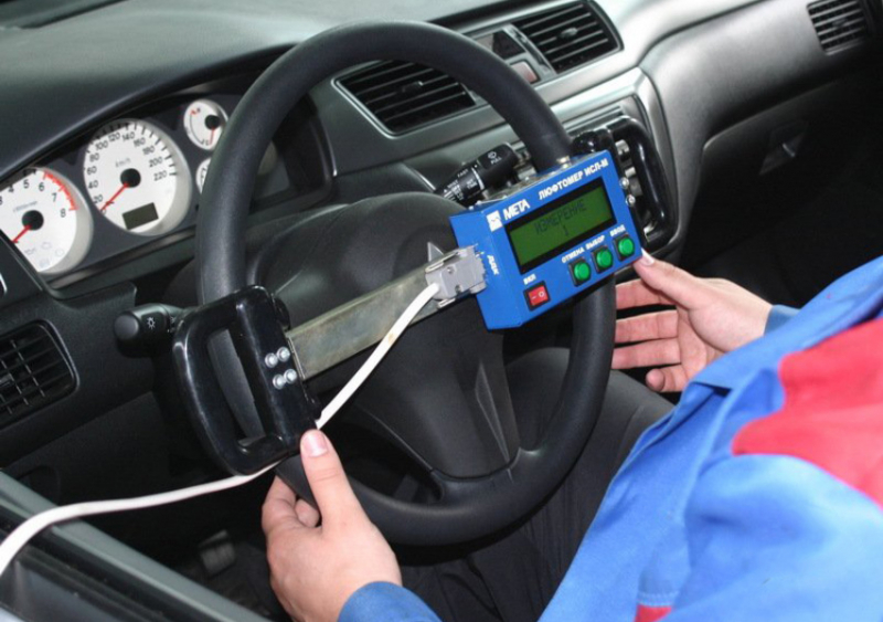 Для проверки люфта расположите автомобиль на ровной площадке, запустите двигатель на холостой ход. Далее сделайте отметку по центру рулевого колеса, чтобы определить его величину. Проворачивайте руль влево и вправо до момента начала вращения колеса. Затем прокрутите колесо до упора.