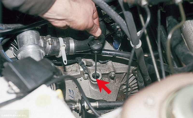 Проверка уровня масла | Проверка уровня масла после прогрева коробки передач. | Уровень масла должен быть на уровне нижней кромки заливного отверстия. |