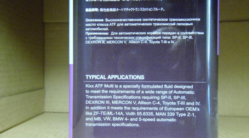 - Этикетка. Она должна полностью соответствовать той, что представлена на официальном сайте производителя трансмиссионной жидкости. Никакие отличия или ошибки недопустимы. Все надписи и изображения должны быть четкими и ясными, без размытия.
