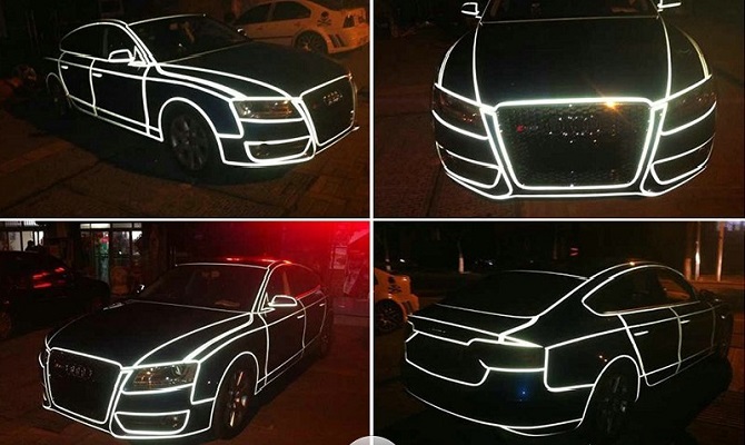 Виниловые наклейки изготавливают и на основе светоотражающей пленки. Наравне с декоративной функцией, она играет роль сигнального средства в вечернее время. Где могут пригодиться такие наклейки? Их можно увидеть на такси, грузовом и служебном транспорте, а также на частных авто, если крайне важно, чтобы при плохом освещении была четко видна надпись организации, номер телефона или рекламное обращение. Похожими свойствами обладают виниловые наклейки на основе светонакапливающей пленки. Такой материал способен поглощать световое излучение в течение дня, в результате увеличивается интенсивность цвета, и наклейка становится более заметной в сумерках. Причем цвет со временем не тускнеет, а становится еще ярче, что для большинства наклеек является главной проблемой.