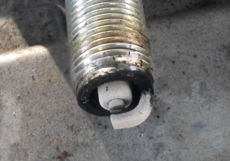 Чрезмерно бедная смесь (недостаток топлива) | Белый или светло-серый изолятор, возможно, с оплавлением электрода. | Засоренный топливный фильтр, неисправный топливный насос, неправильно отрегулированный карбюратор (если есть), воздушная утечка во впускном тракте. |