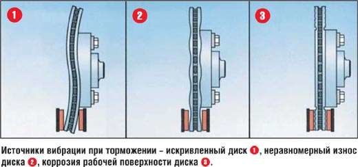 Торможение скоростной машины, если оно сопровождается вибрацией, небезопасно. Руль может выскочить из рук, и на краткое мгновение теряется управление. Последствия понятны. Экономя на устранении дефектов, постоянно увеличивают опасность вождения.