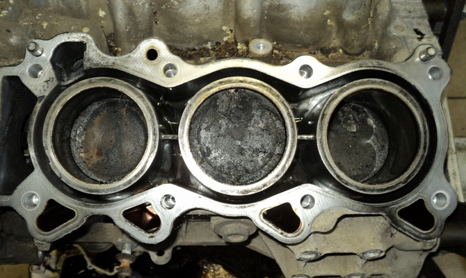 - Повреждение стенок блока цилиндров – наряду с маслосъемными кольцами, ремонт этой неисправности является одним из самых затратных. Решение заключается в расточке блока или его полной замене, причем второй вариант предпочтительнее. Даже с использованием современного оборудования нет гарантии, что утечки масла не появятся в ближайшем будущем.