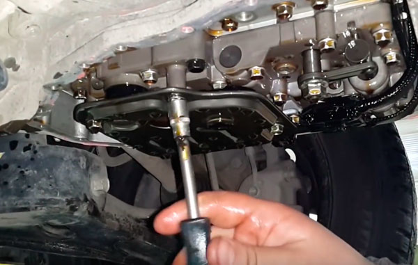 5 | Установка поддона | Установить новый уплотнитель на поддон АКПП. Прикрутить поддон на место. |