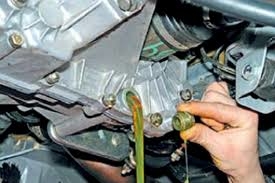 Гаечным ключом (возможно, придется воспользоваться отверткой) выкручиваются крепления брызговика двигателя (не исключено, что нужно будет снять еще и корпус воздухофильтра), под ними следует найти сливное отверстие на КПП и открыть его, открутив пробку либо вытащив щуп-измеритель, предварительно подставив под него тару. Эта операция проводится с целью снижения давления в смазочной системе.